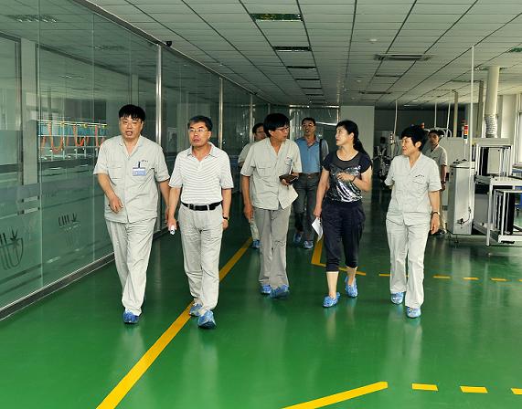 _ 市中級人民法院副院長劉奇(左二),凌河區(qū)法院院長黃萍(右二)到我集團生產(chǎn)現(xiàn)場實地調(diào)研。