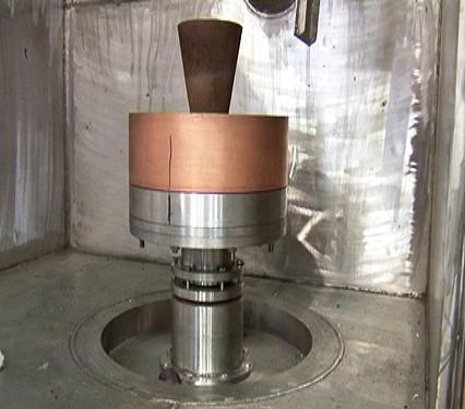 1307#產(chǎn)品ZGX-50B雙性能鑄造爐中的液壓隨動(dòng)傾轉(zhuǎn)澆注系統(tǒng)與離心轉(zhuǎn)動(dòng)機(jī)構(gòu)系統(tǒng)是整臺設(shè)備的核心部件,它可以將熔煉好的鋼液用模仿人的操控動(dòng)作快速準(zhǔn)確倒入模殼中,然后開動(dòng)轉(zhuǎn)動(dòng)機(jī)構(gòu),使水冷結(jié)晶器帶動(dòng)模殼按程序正反方向旋轉(zhuǎn),待高溫合金凝固后即得到細(xì)晶組織。這兩項(xiàng)動(dòng)作必須連貫無誤的操作執(zhí)行才能成功。