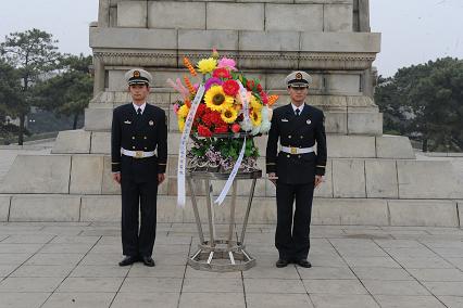 4月1日下午,我們在系教員常路賓帶領(lǐng)下,來到位于錦州的遼沈戰(zhàn)役紀念館,向英雄紀念碑敬獻花籃。儀式在雄壯激昂的《獻花曲》中拉開序幕,兩名禮兵邁著鏗鏘有力的禮步將花籃緩緩送到紀念塔正前方?;ɑ@挽聯(lián)上寫道:“功業(yè)常齊天地永,紅旗自由后人擎;中國人民解放軍海軍工程大學敬挽。”在主持人的組織下,我們統(tǒng)一脫帽,向烈士紀念塔默哀一分鐘。并重溫了入伍宣誓。最后,教員對我們說道:“同志們,歷史證明,強國必先強軍。今天的你們是以共和國未來海軍軍官的身份來到此地,更應(yīng)當學習先烈們的優(yōu)秀品質(zhì),不斷磨礪自己,努力提升自己,在強軍興軍的征程上奉獻自己的青春熱血!”